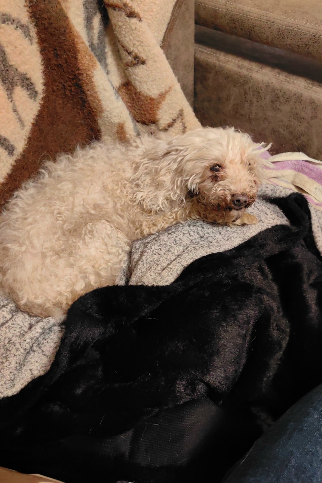 Найдена маленькая собачка в подъезде. Район северное шоссе. На собаке тонкий голубой ошейник. Похожа на персикового пуделя. Девочка. Хозяева, или желающие взять малышку себе, отзовитесь пожалуйста 🙏В данный момент находится у меня дома, утром вынуждена буду выпустить её обратно в подъезд. ( у меня 2 своих собаки). телефон для связи 621138.