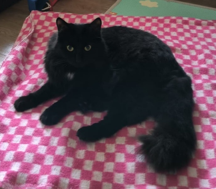 Сбежал из квартиры на Парковой 10.08.2025. Длинношерстный, очень пушистый, черный, с одним белым пятнышком на груди. На клички не отзывается, ошейника нет.