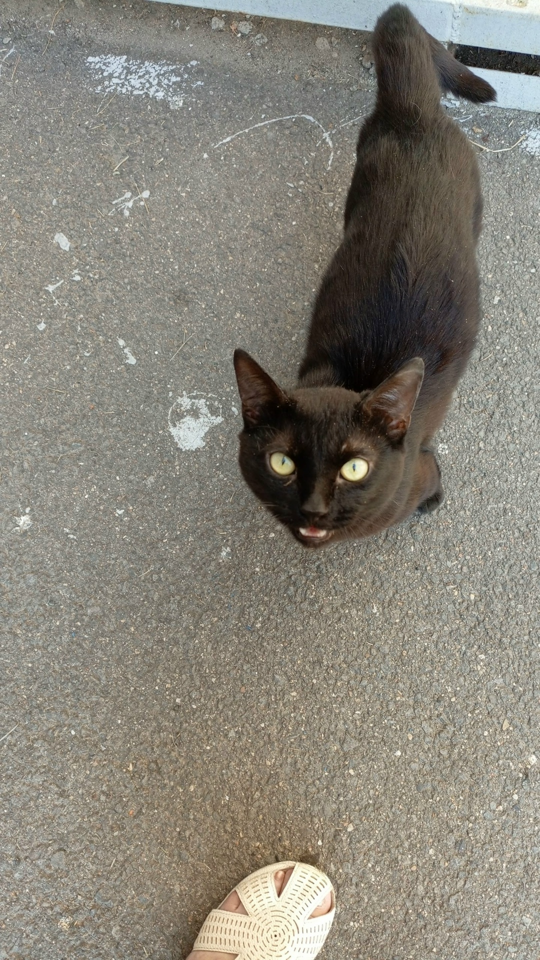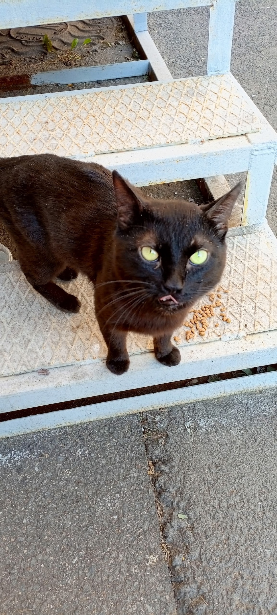 Недели три назад на Маяковского появился черный котик, прятался в кустах по окнами, сначала думала кошка. Стал подходить кушать и оказалось что это кот, либо совсем молодой, либо уже кастрирован. Абсолютно черный, ласковый, все время бегает следом и плачет. Похоже, что кто то или подбросил или потерялся. Скорее всего первое. Взять абсолютно некуда, в подвалы не идет, видимо уже погоняли его