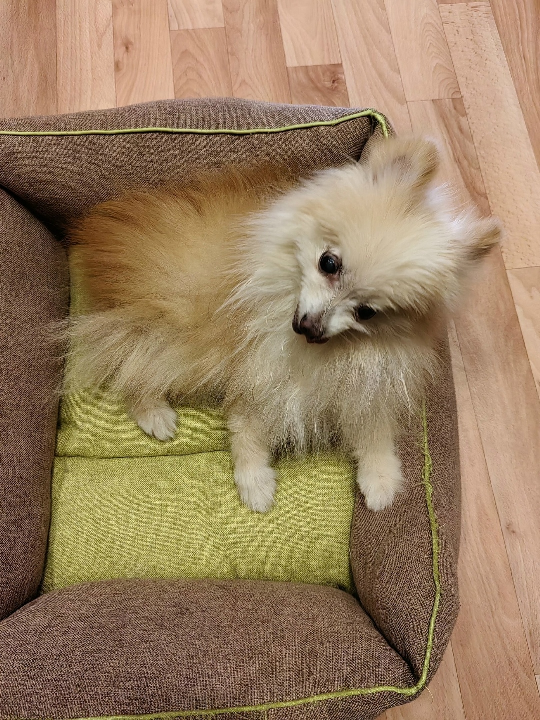 Малыш был найден на улице, проверили в ветклинике, сдали анализи и сводили к грумеру, одним словом привели в порядок. Собака очень пожилая
