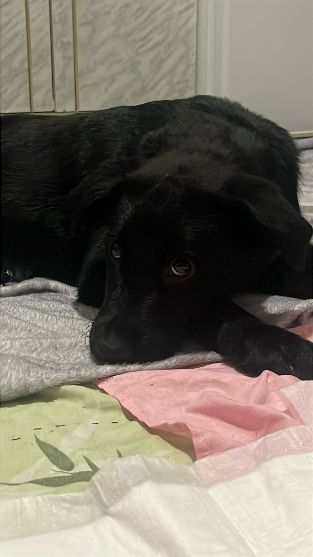 Помесь лабрадора с кем то еще. Около 4-5 месяцев, возможно даже привит
