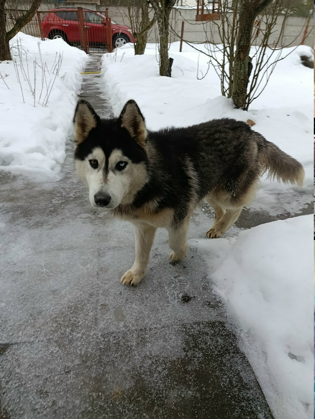 На вид подросток.Упитанная и не голодная,есть след от ошейника,но без него.