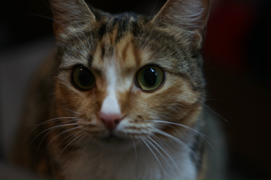 Полосатая вредная небольшая, скорее всего где-то с домом Новгородский 93, но не могу дозваться