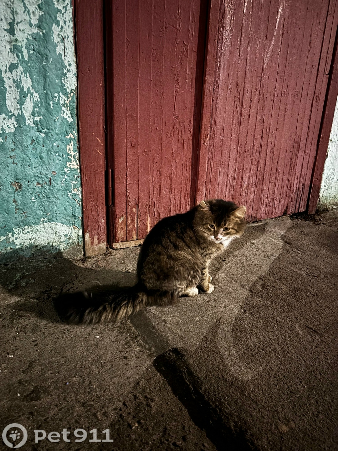Кот или кошка. Чистая, пушистая, немного напугана, правое ушко в крови. Побежала под машины