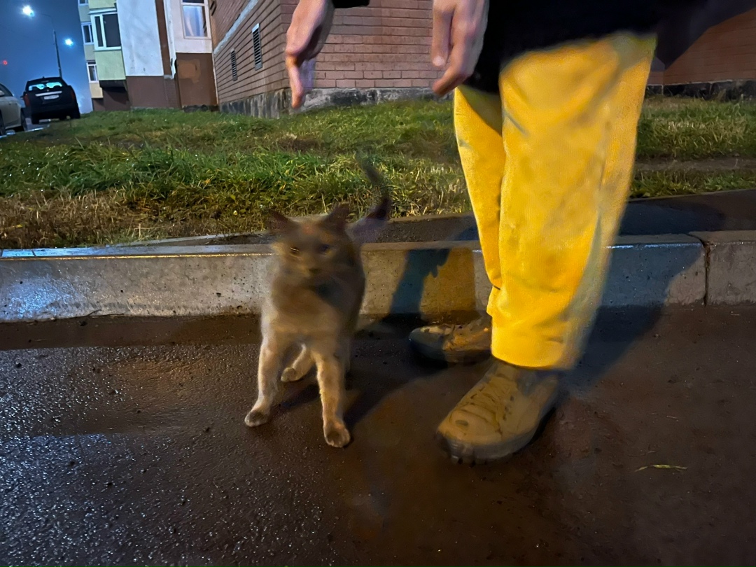Московский 25 к 1. Бегает кошечка. Контактная. Очень громко мяукает.