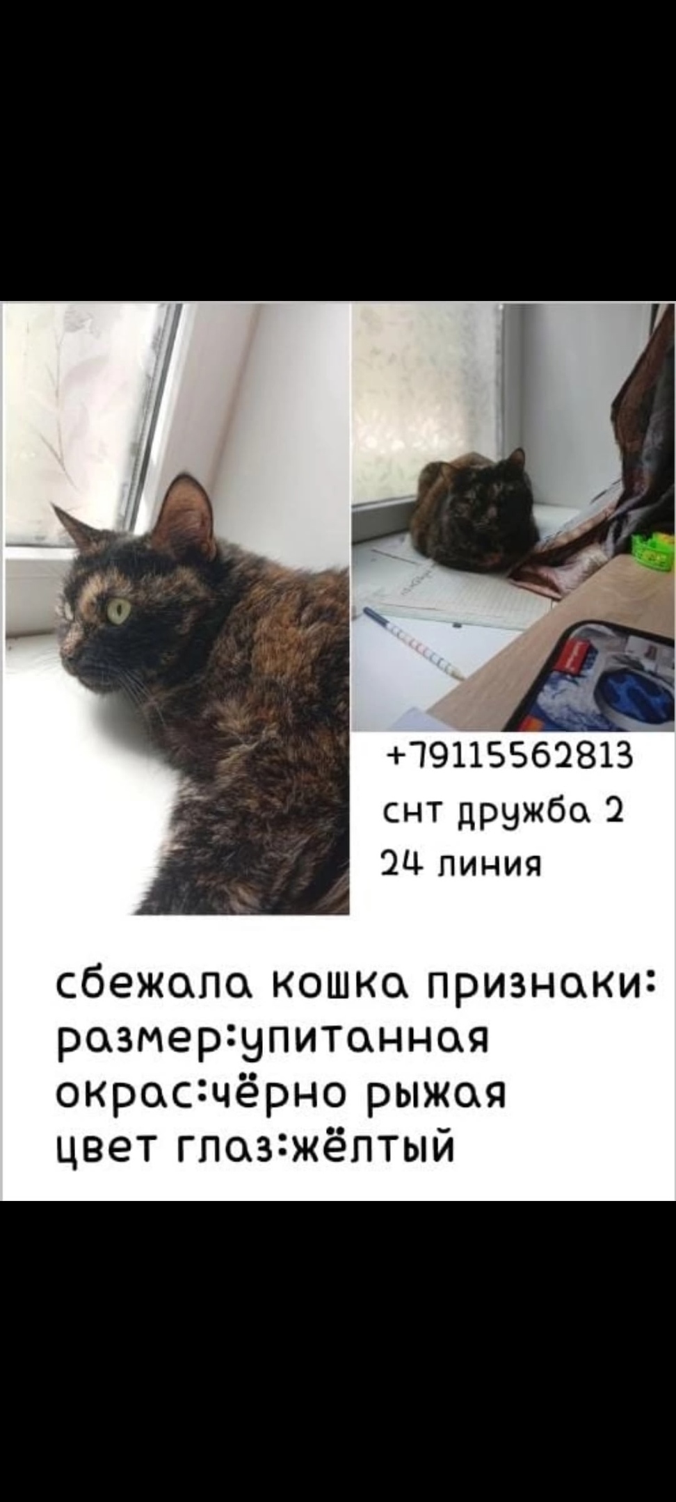 Потерялась кошка Нюша. Новодвинск СНТ Дружба. Кто видел-звоните, пишите в любое время тел. 89115562813.