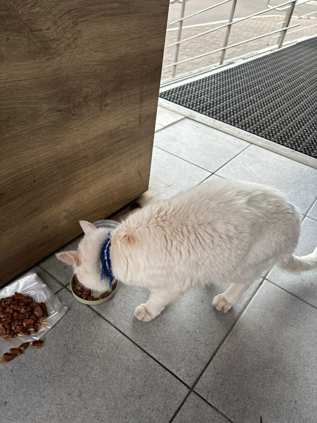В Соломбале, в районе магазина «Гермес» ул. Советская д.10 сидит котик с синим ошейником, очень напуган, грязный, голодный, видно, домашний, может быть кто-то потерял и ищет. Заберите котика домой 🏡