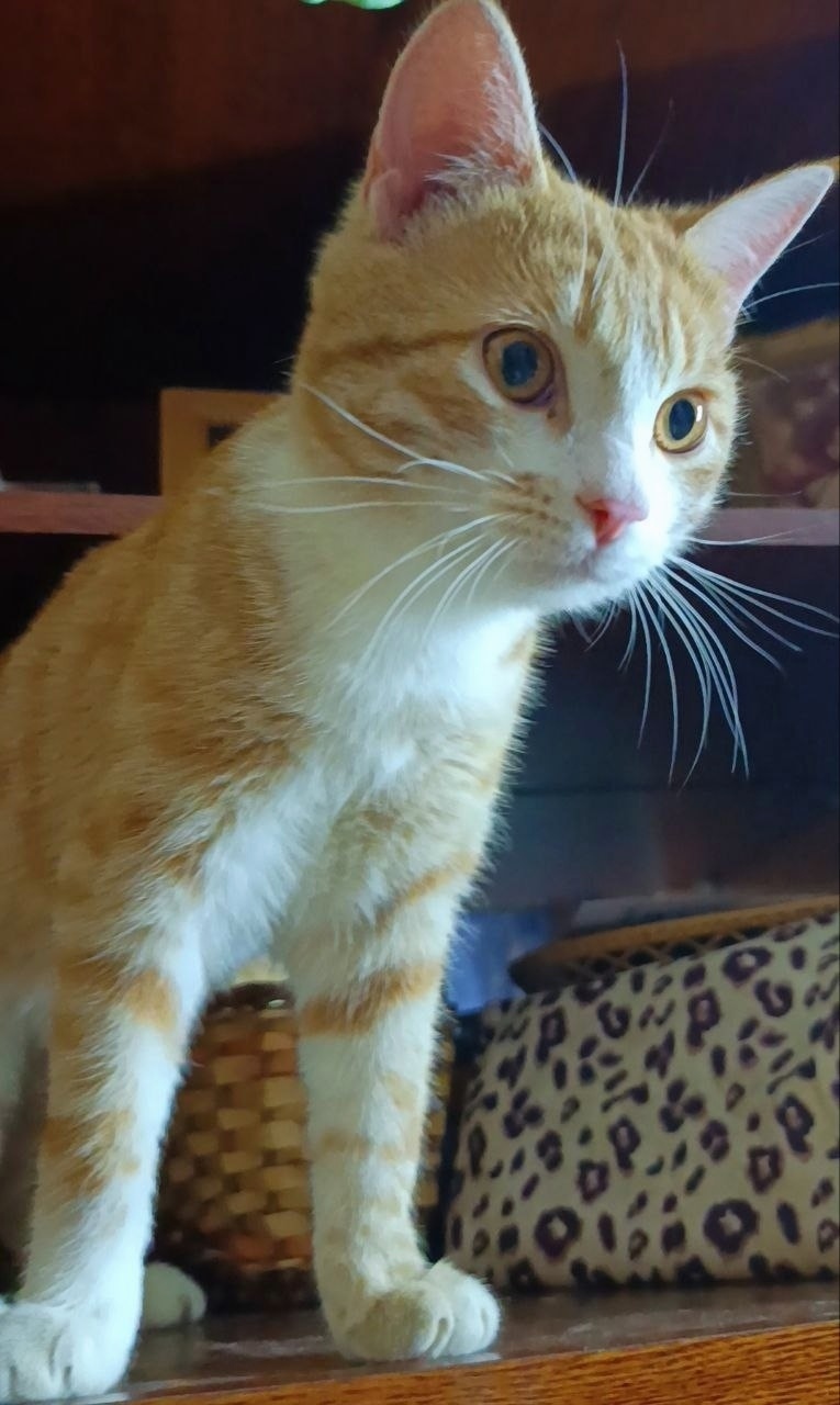 Молодой, около года, очень ласковый и доверчивый котик.