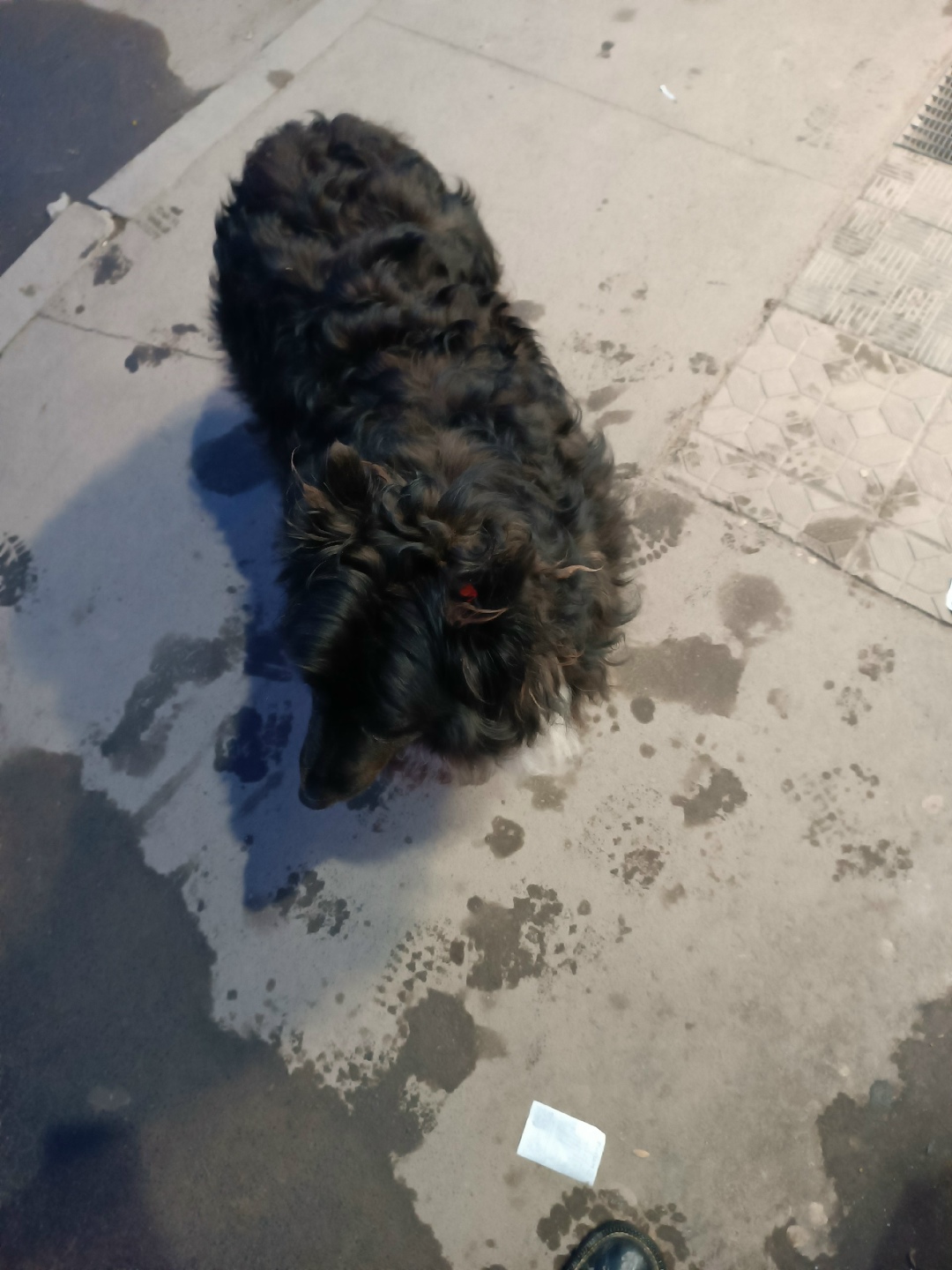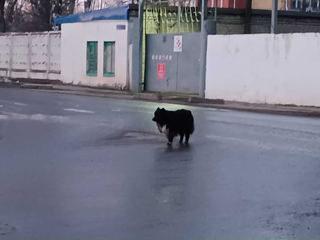 Добрый вечер! Попался на глаза вот такой пёсик на улице - 28.03.2026. На ушке есть красная бирка, но он пугливый - не особо даётся осмотреть его, смогла только покормить немного. Выходит на дорогу - может, кто потерял его?🙏