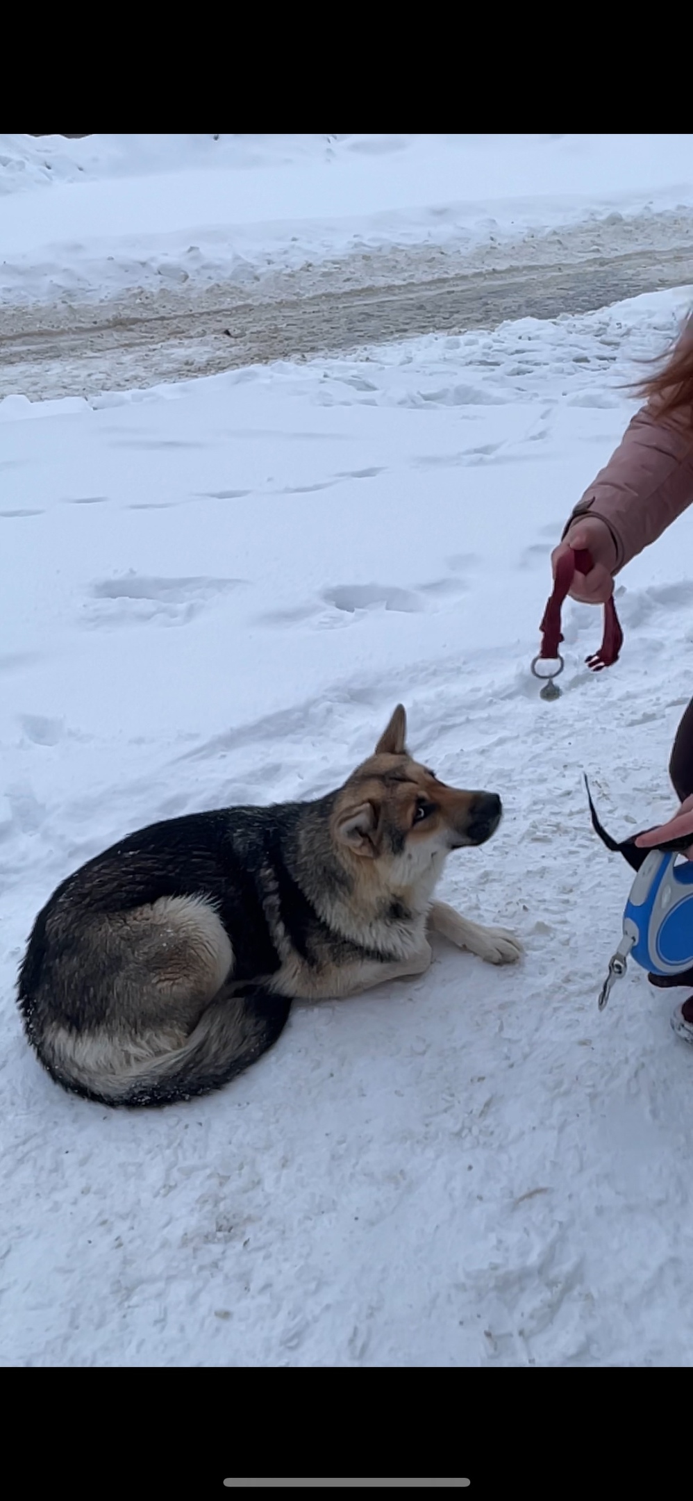 Спокойная, ласковая, умная, видно что была домашней (текущая гипотеза - выкинули из-за щенков)