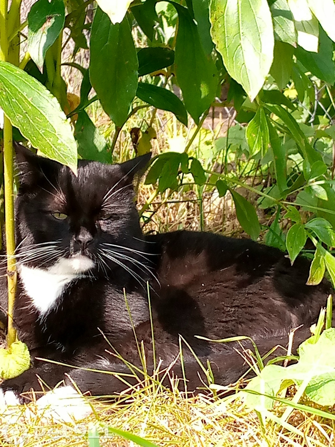 Черно белый,левый глаз течет,пугливый,крикун,очень шустрый.Ушел и не вернулся...