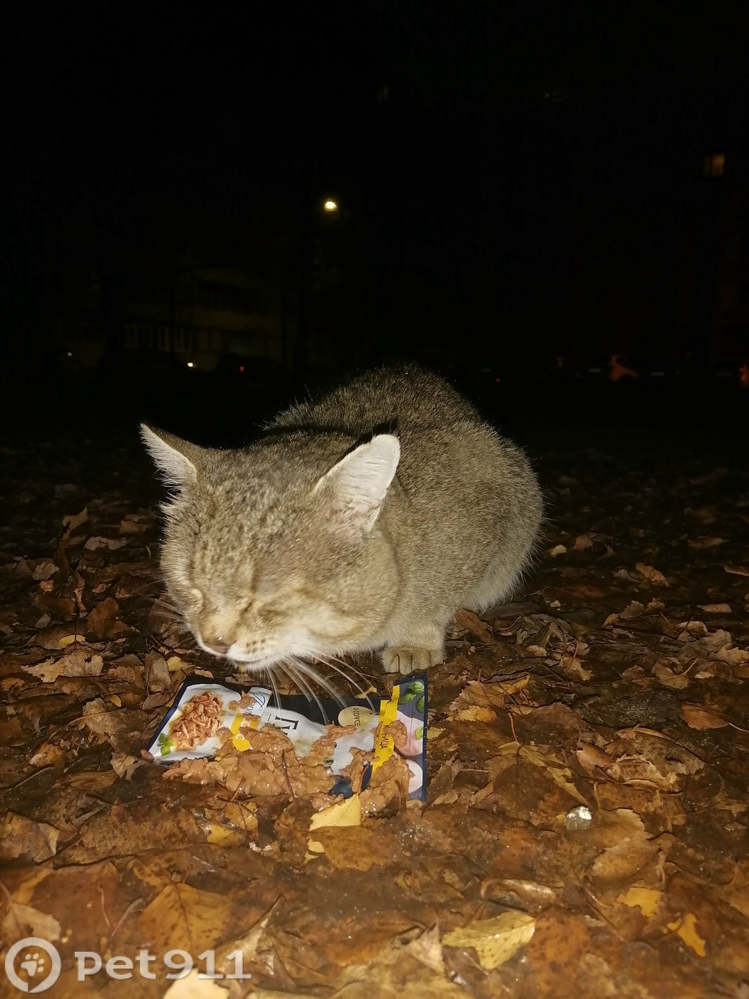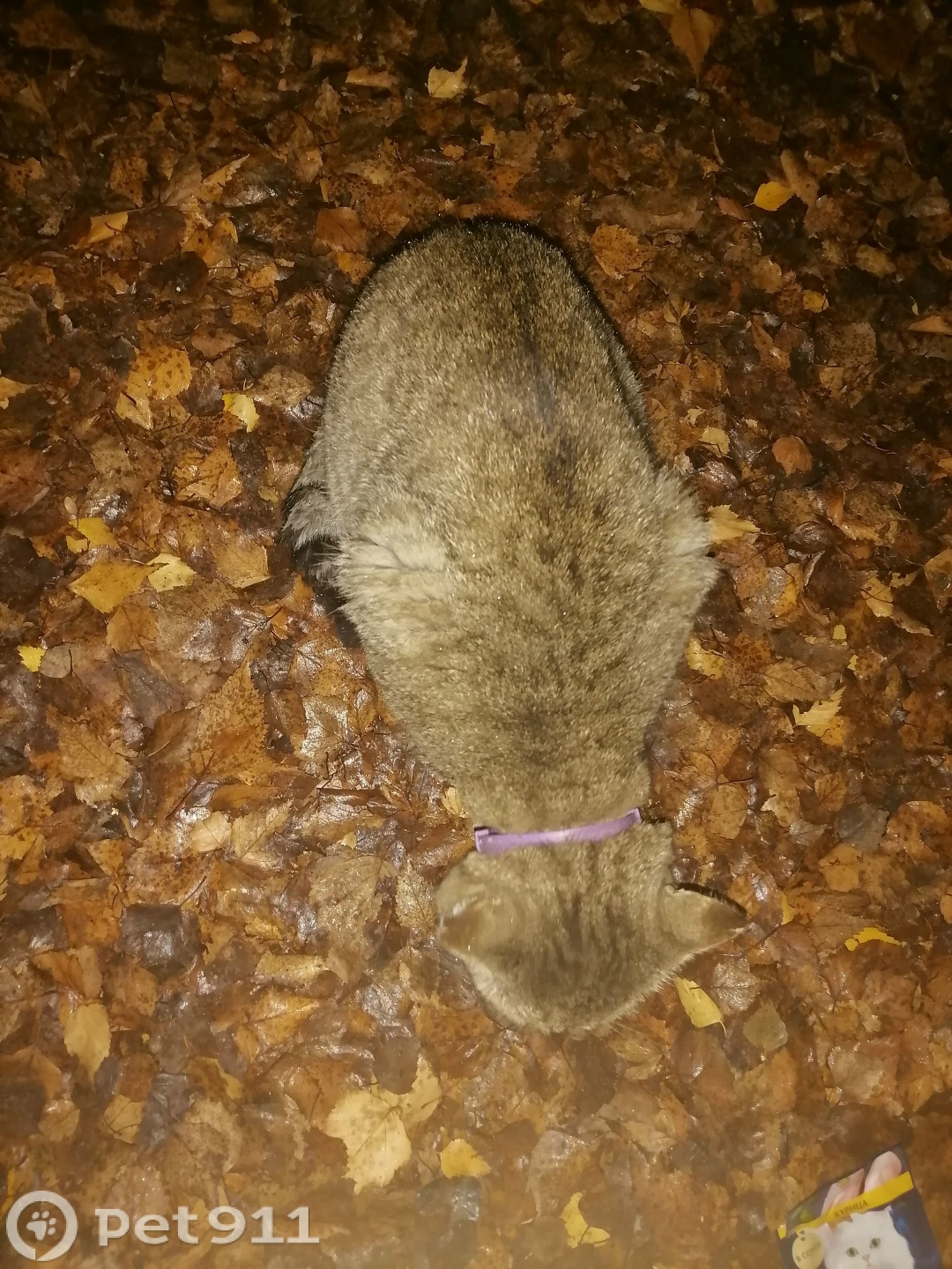 Найден кот, камышового окраса, с фиолетовым ошейником, сидит по середине двора и кричит 2 ночь, контактный, дал себя погладить и накормить.