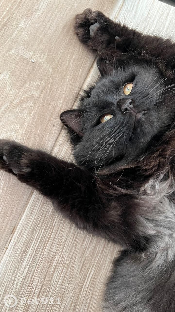 Возраст 2-3 года, кастрированный, ручной. Окрас черный, очень пушистый. Хвост короткий (как у бобтейла).