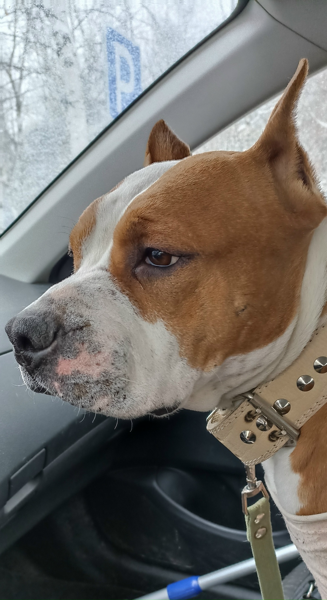 Я в стаффах, конечно, ничего не понимаю, но, мне кажется, она красавица – компактная, поджарая, сильная, очень гармонично сложена. Только нос весь покоцанный, видимо, насыщенная жизнь у неё была.