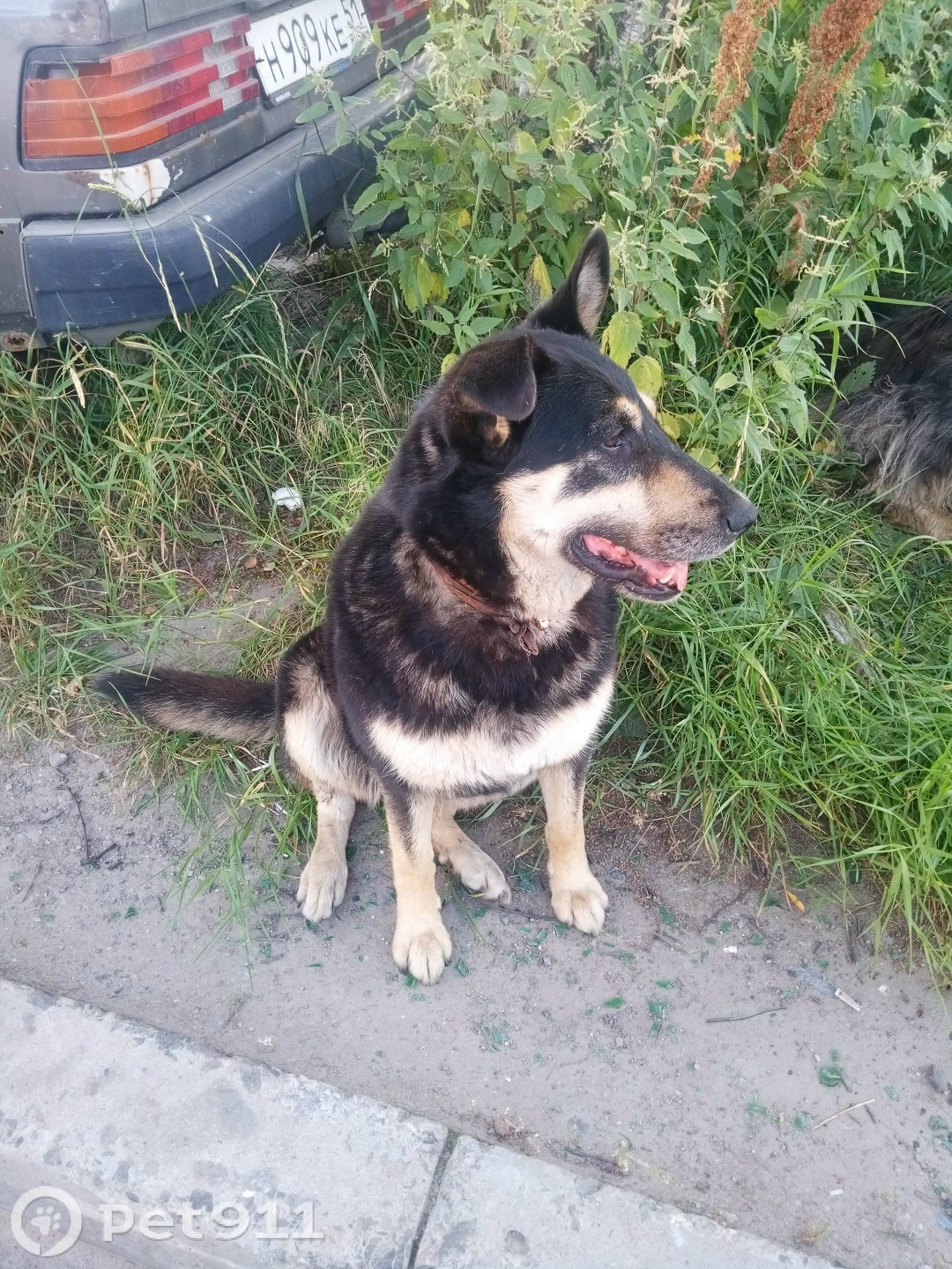 собачка пожилая,окрас черный со светлым,уши не стоячие,сейчас линяет,осторожная очень,ошейник темный из натуральной кожи с карабином.