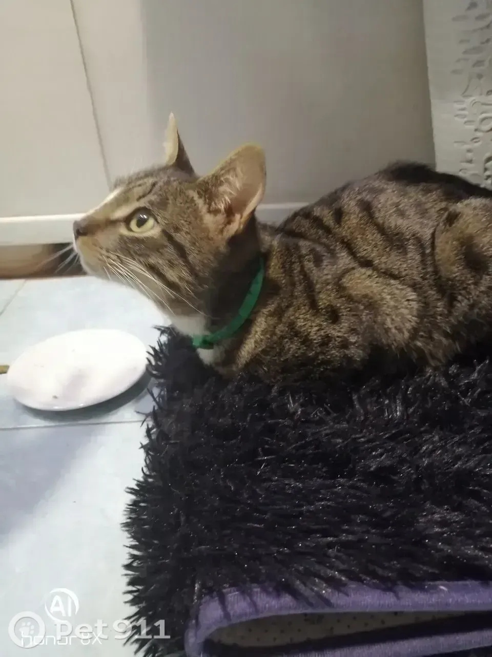 Ухоженный домашний. В зеленом ошейнике