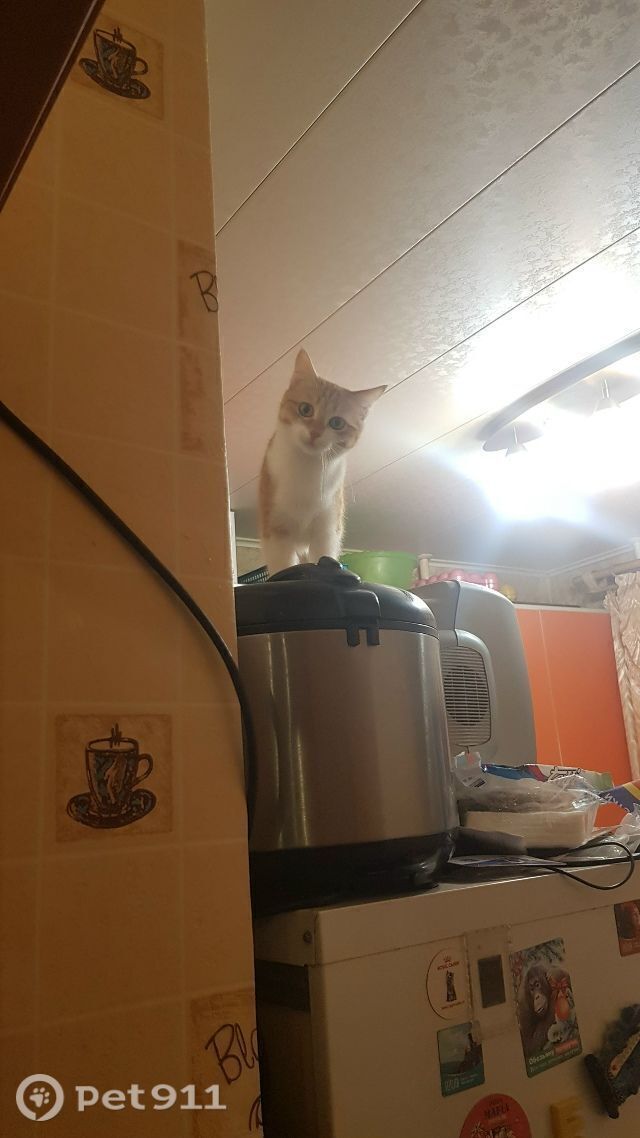 Молодая кошечка.Средних размеров. Небольшого роста.Окрас рыже белый.Грубка почти вся белая.Спина рыжая.Хвост рыже-белый.Лапки передние белые