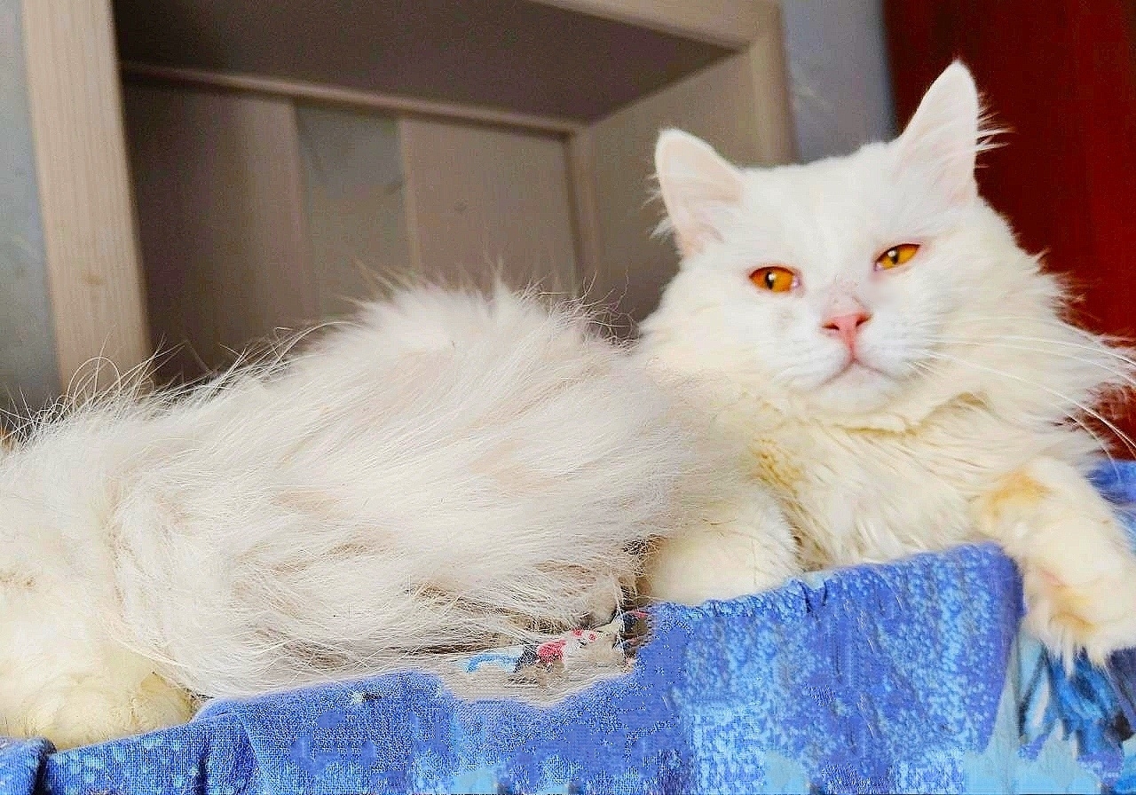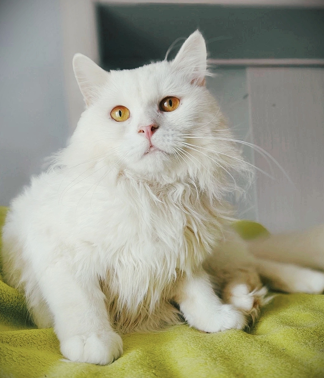 🍴🍗🐱Сейчас отьевшийся и повеселевший, длинношерстный белокурый Морис очень хочет расстаться с клеткой и обрести🏡 настоящий дом, с личной лежанкой и полной миской. Воспитан, скромен, ласков и умён. Он преодолел страх и пугливость, и очень отзывчивый на ласку и вкусняшку😘