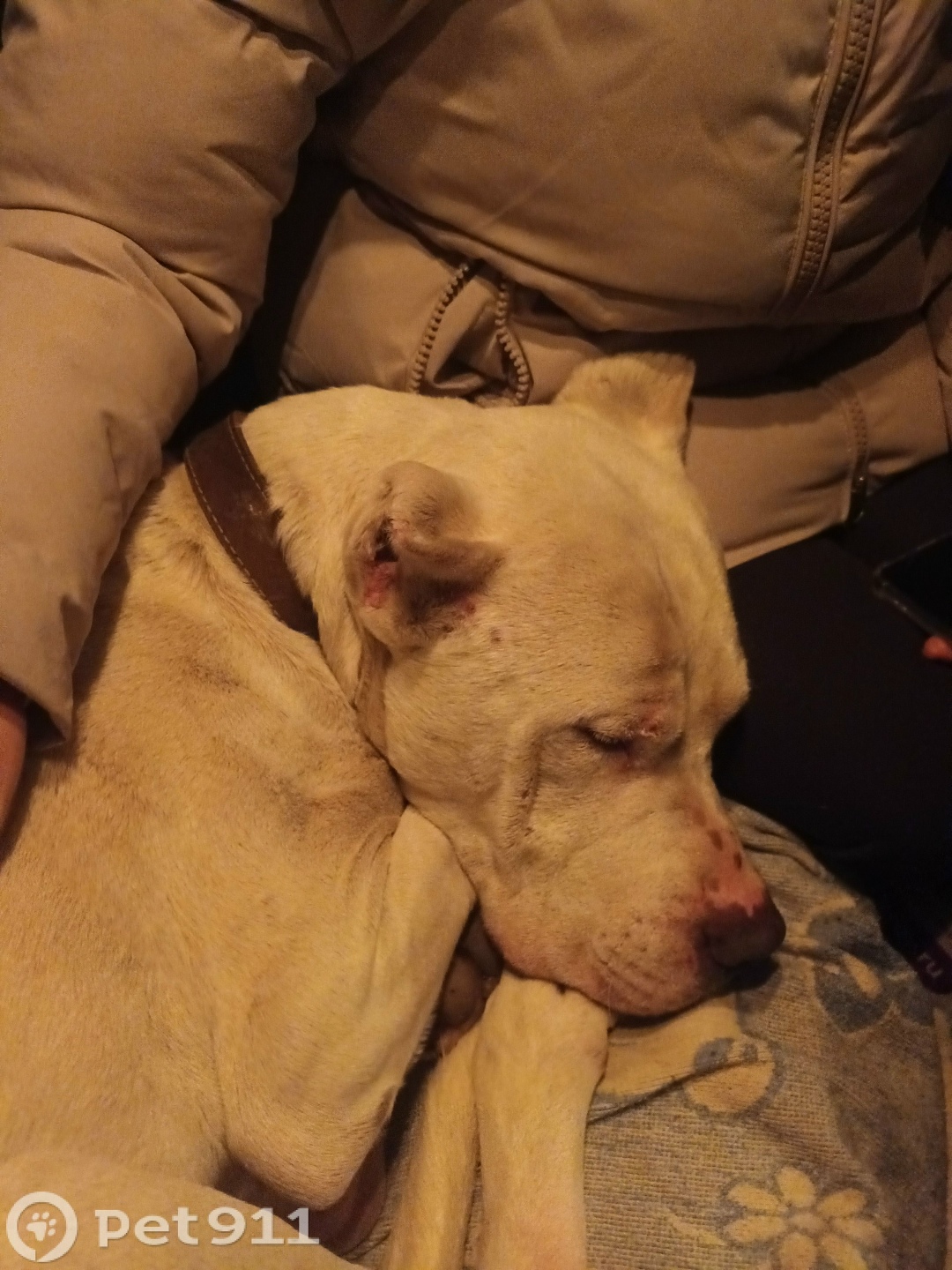 Белый, кобель 5 лет с клеймом ,по данным ,как вроде последняя хозяйка из Московской обл. Нашёлся в Костромской обл.Песик спокойный, послушный ,след от ошейника ,скитался похоже давно,