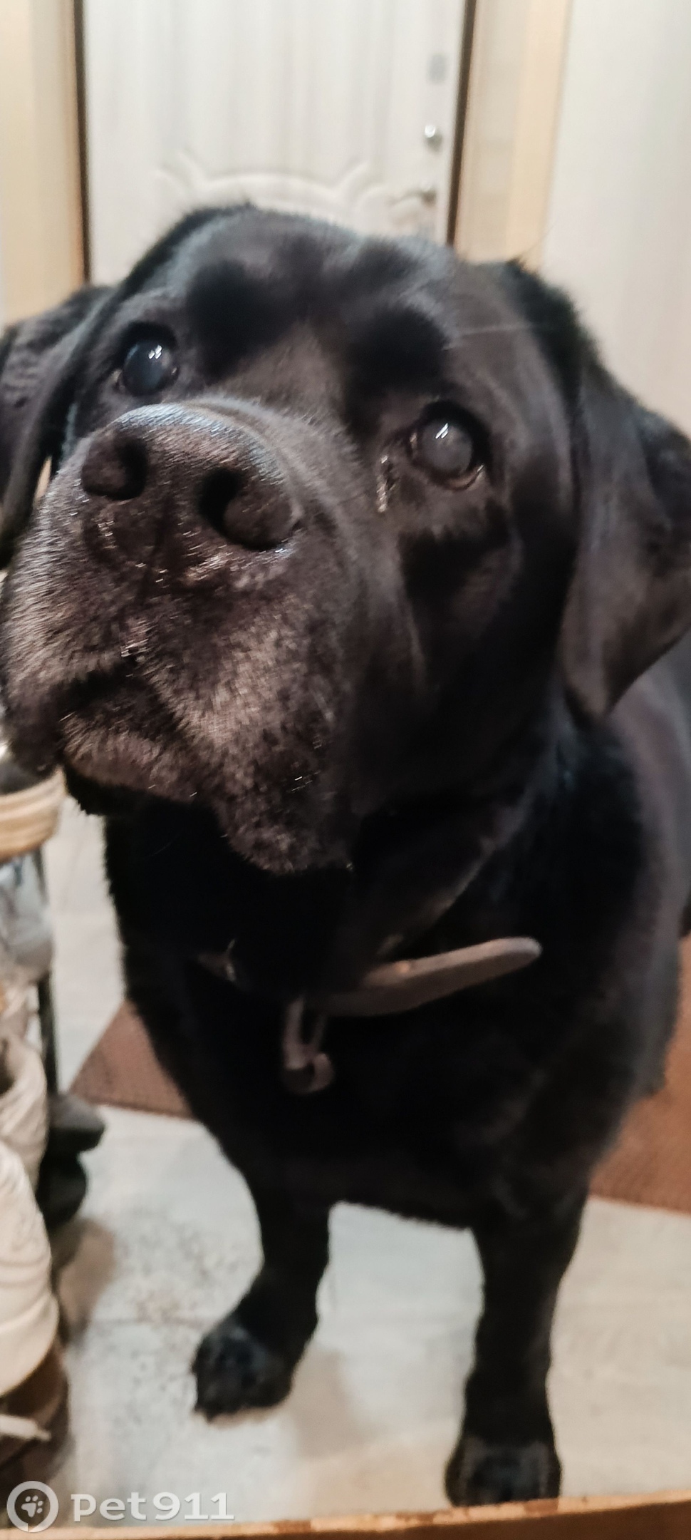 Лабрадор ретривер, окрас черный, мальчик, на вид лет 5-6. Воспитанный, домашний, ухоженный, блестящий. Кастрированный. Черный кожаный ошейник. Возможно был медальон, осталось только колечко. Пёс ласковый.