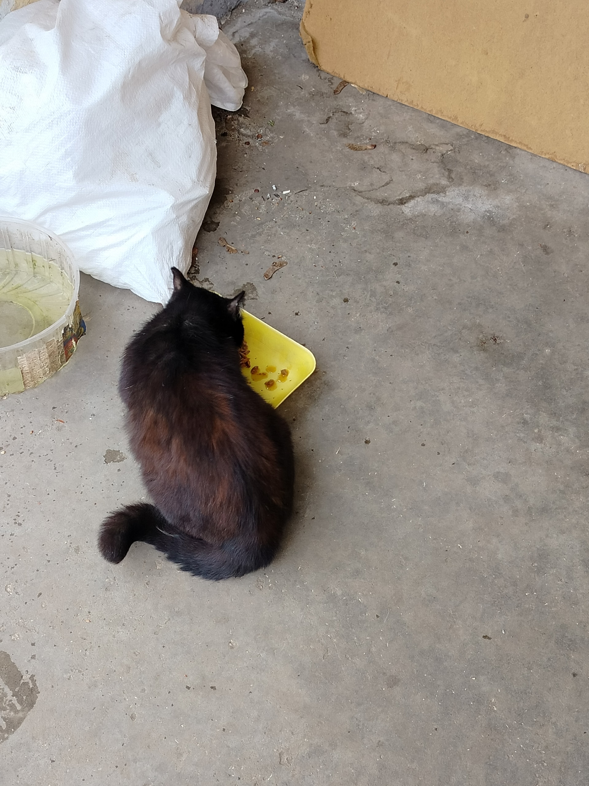 Срочно🆘🆘🆘🆘🆘 Может кто-нибудь знает про этих бедолаг на улице Верхняя Дуброва? Номер дома в личку. Шла мимо по работе, увидела, сначала чёрного котика(кошку), не знаю кто точно. Накормила, был очень голодный. Стоят плошки, значит кто-то иногда кормит, потом увидела глубоко беременную кошку. Ей картонку кто-то постелил. Я ничего не понимаю с кошками, но мне кажется она скоро родит. По размеру она маленькая, а живот здоровый. Скоро появятся никому не нужные котята. Кто-нибудь сможет помочь поймать?Кошечка не ручная. Могу помочь финансово на стерилизацию.