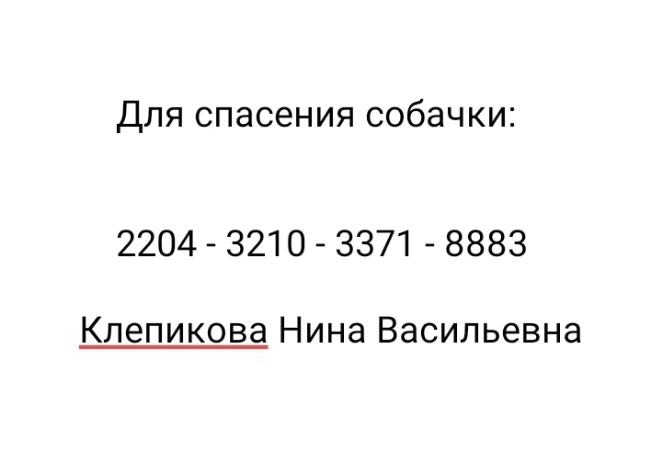 На фотографии написала свою кар точку куда можно направить немного средств, за всё буду отчитываться в группе.