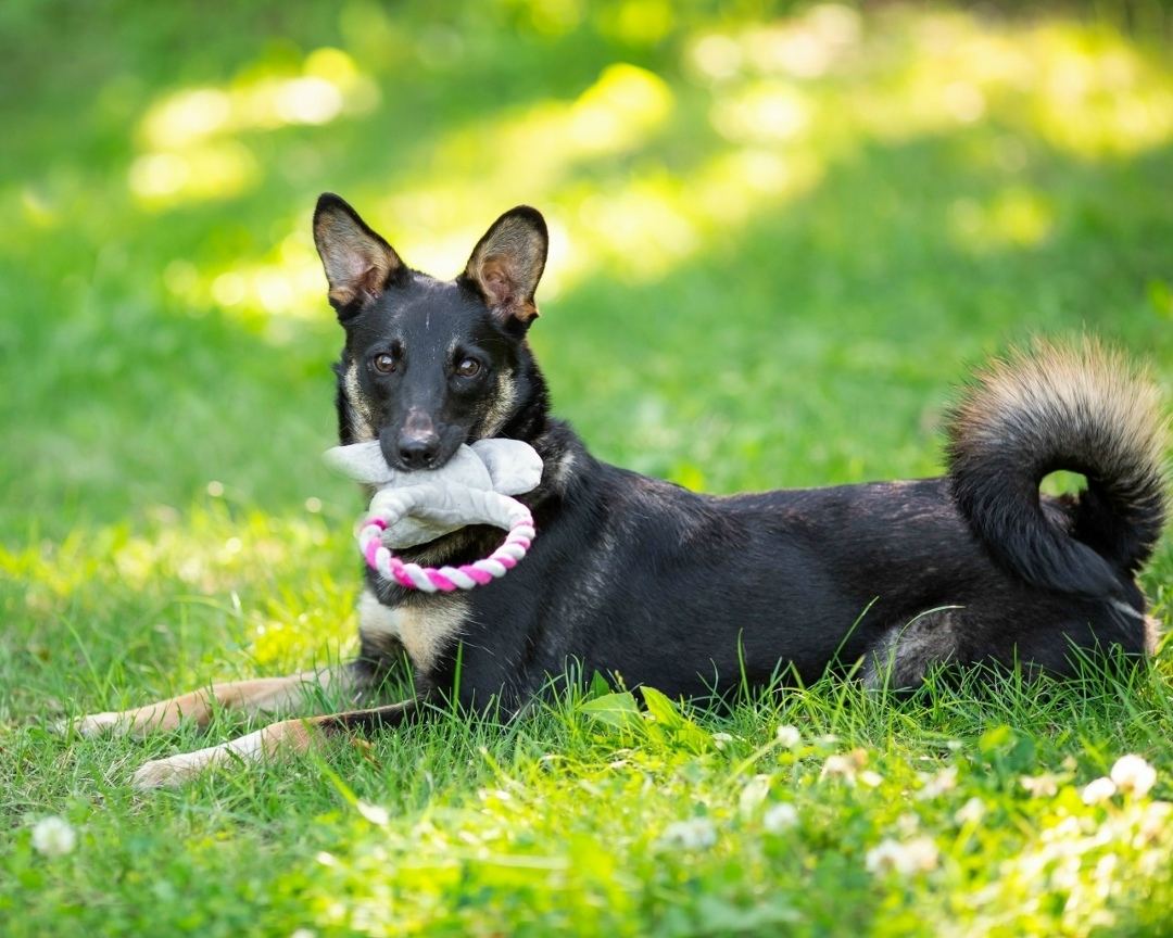 Не лает без повода, с собаками дружит, к кошкам испытывает интерес, общается с ними аккуратно.