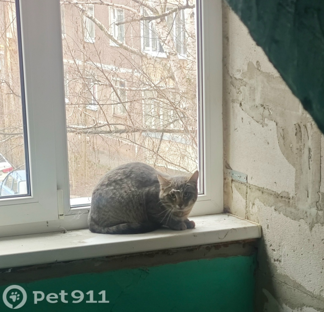 Кошка в 9 подъезде дома 117/50 по ул.Базарной. Очень напугана, шипит и убегает, может кто-то потерял