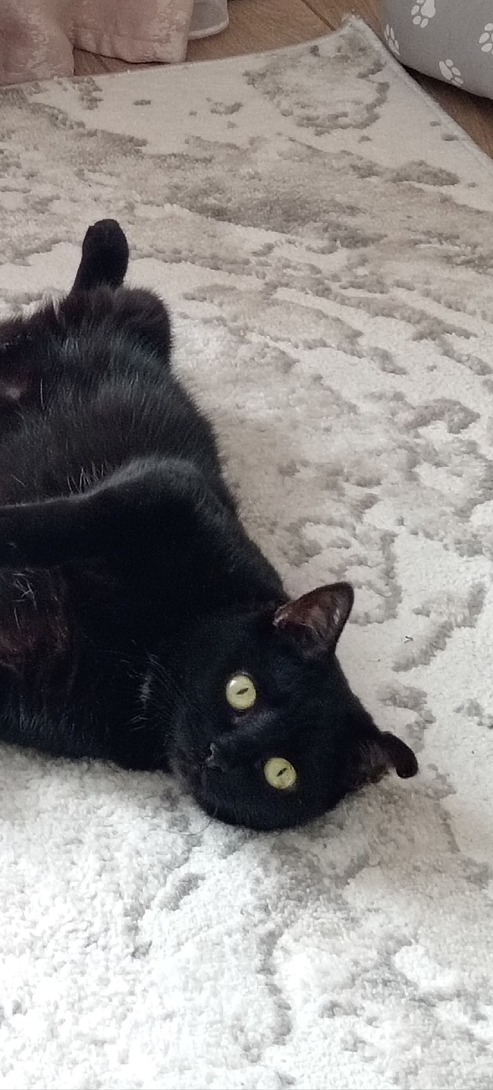 Её легко отличить от других черных котов по разным ушам - одно прямое, другое висит.