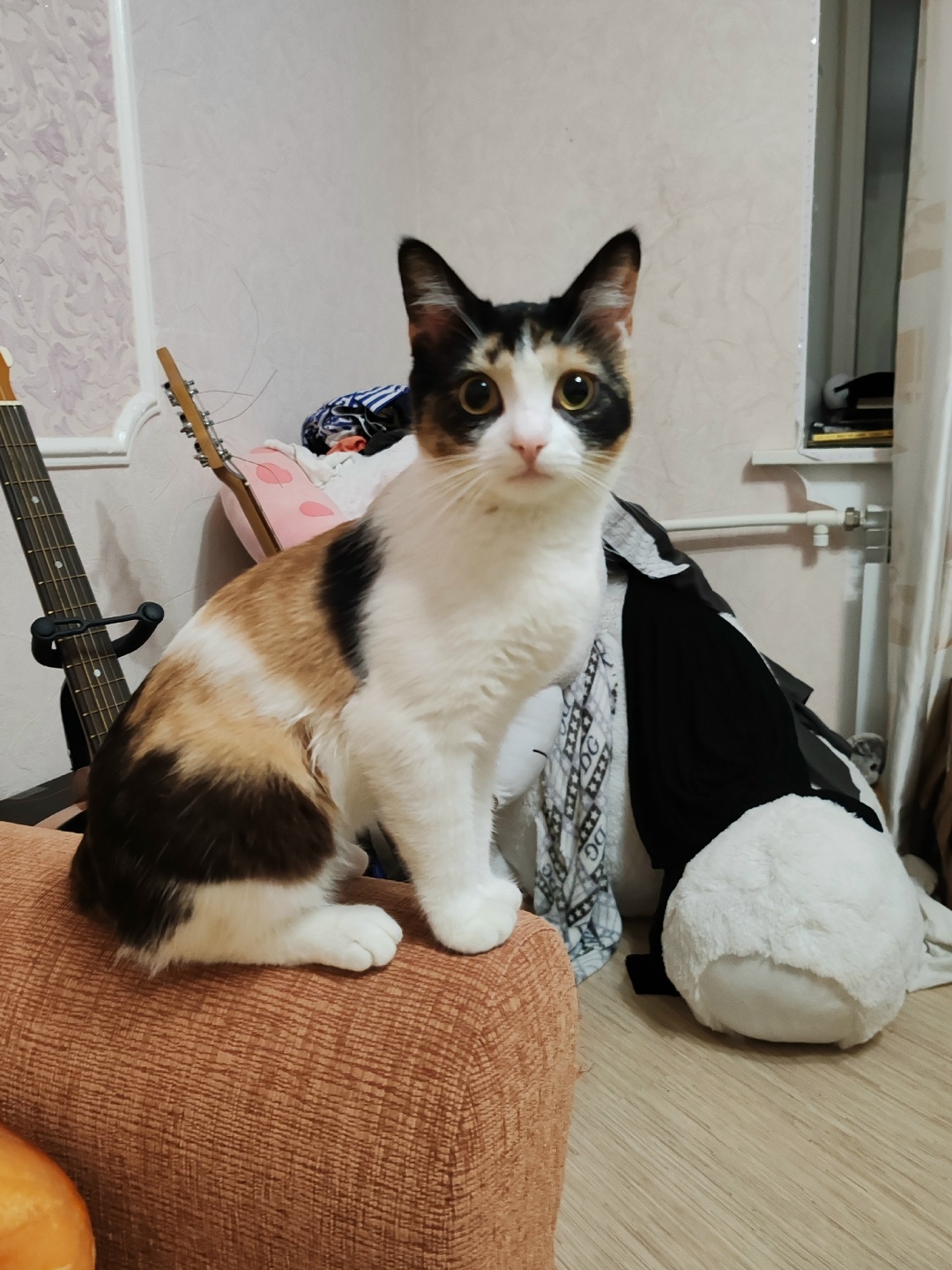 💬 Дополнительная информация: большие и желтые глаза, трехцветная гладкая шерсть, небольшой рост