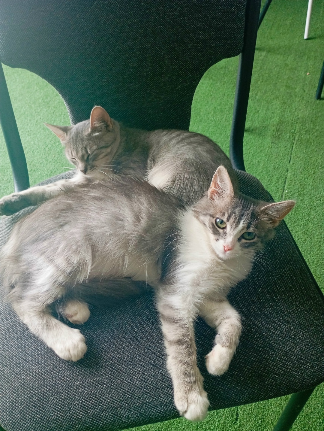 Котята были найдены 2 месяца назад на рынке в грязной тележке,очень боялись людей.