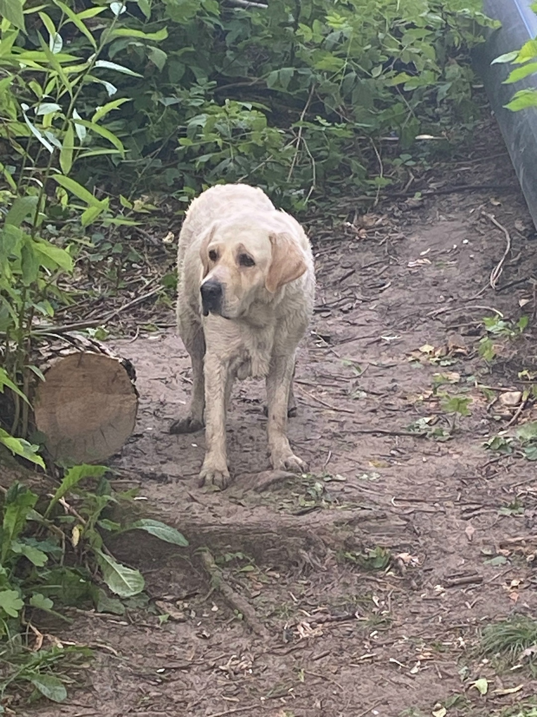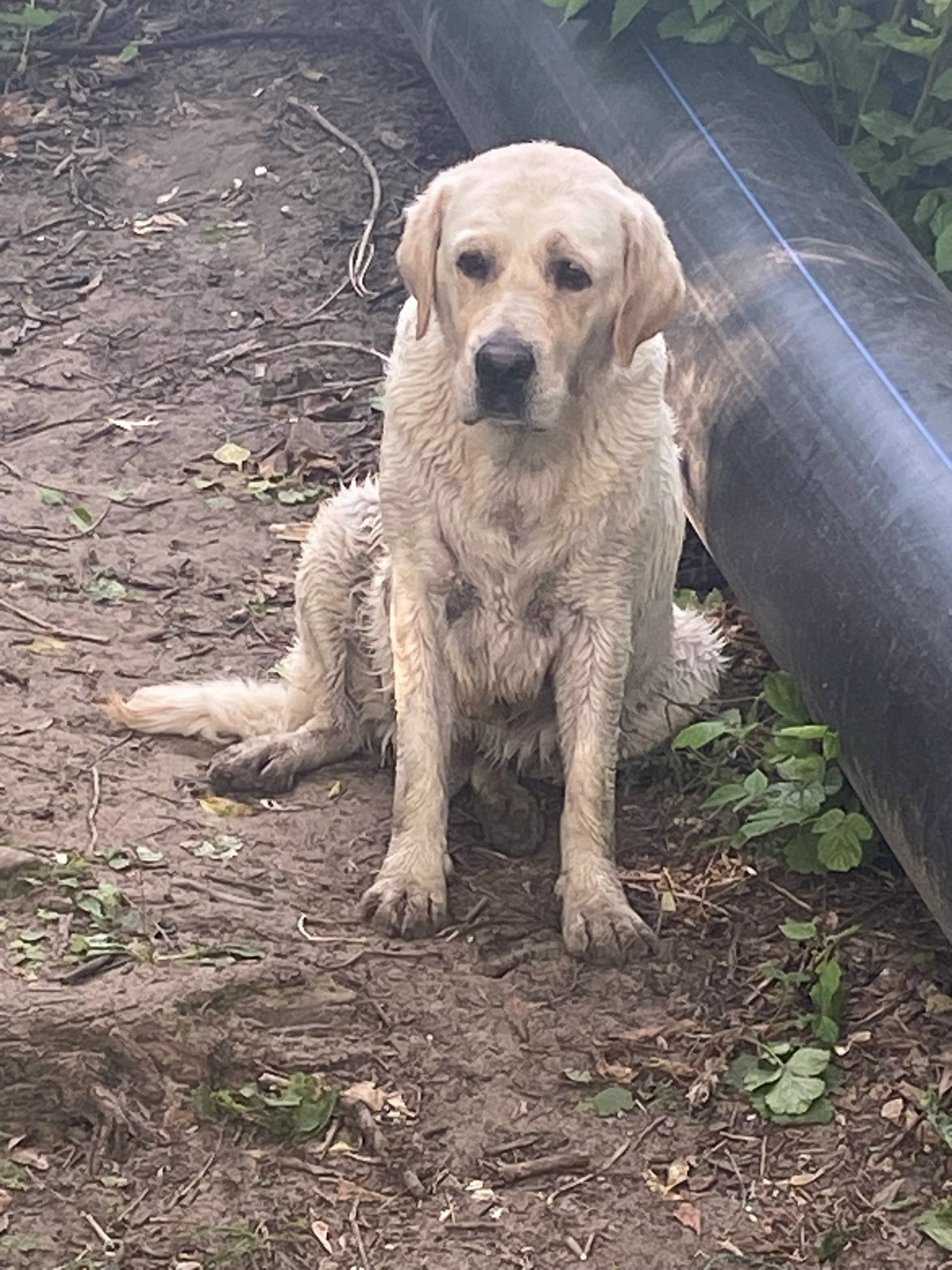 Скорее всего выкинули старенького лабрадора, переплыл реку к нам и лежит:(