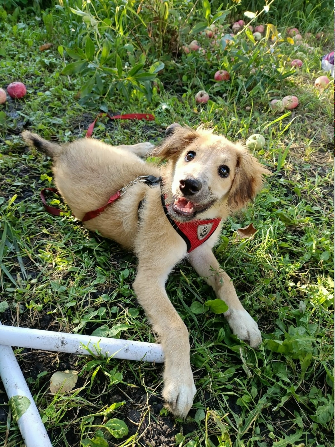 Одна из щенков, которых забрали волонтеры при выезде из села, где их выбросили как ненужных.