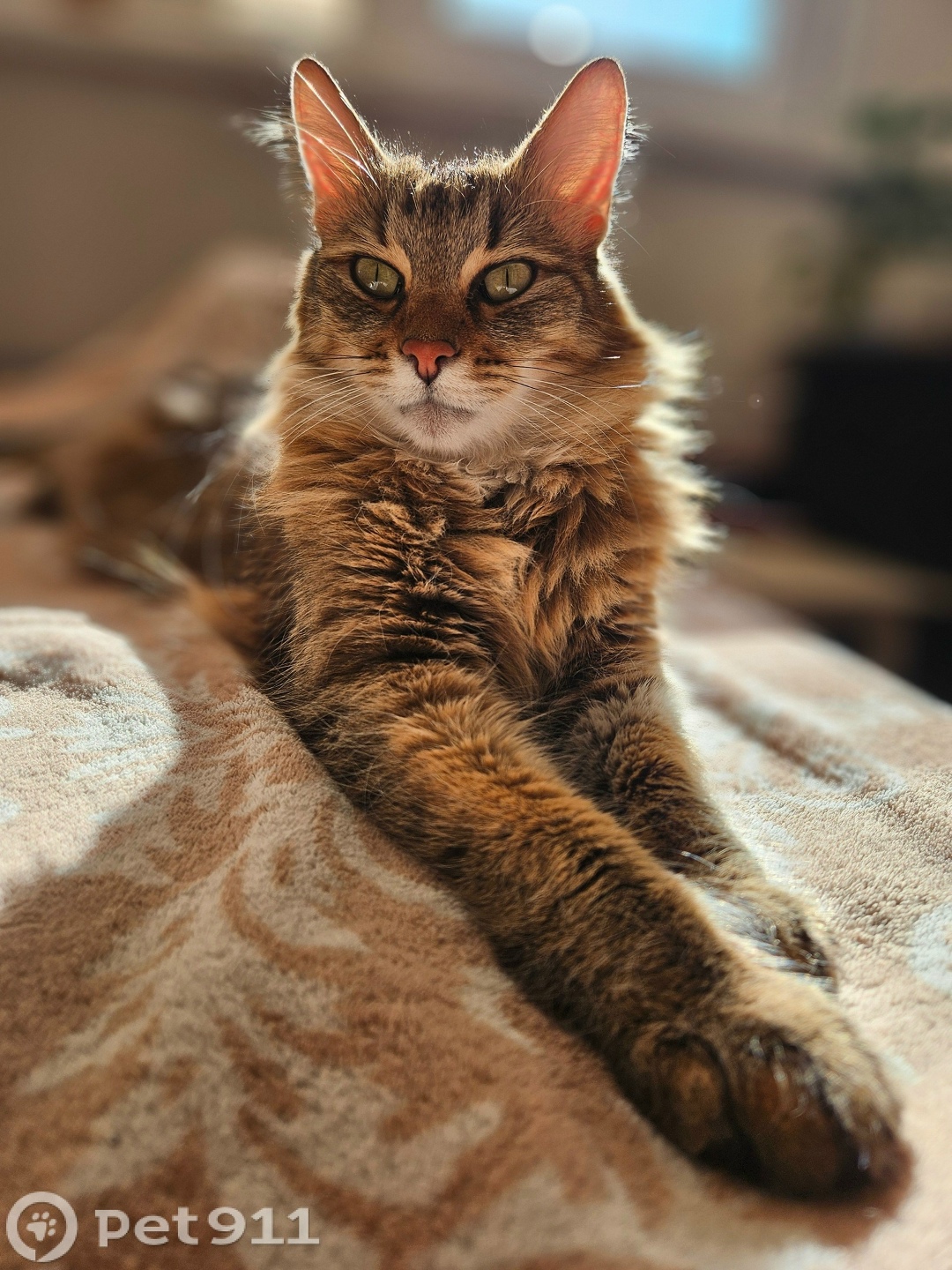 18 Апреля , примерно утром убежал и досих пор не нашли. Помогите найти мы очент переживаем(( Шерсть немного с рыживатым отливом, глаза зелёные, длинные усики, пушистый хвост