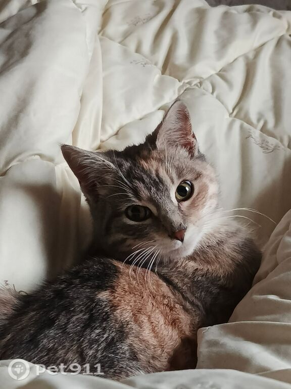 Трёхцветная, молоденькая кошечка. Очень ласковая, не давала до дома дойти, всю дорогу в ногах путалась. Был морозец, ночь, стало жалко, пришлось взять, теперь у меня и живёт. В дом зашла сама, чистая, без блох, к лотку приучена, ручная до одури, абсолютно не агресивная, даже детей не боится, сразу видно домашняя. Самому кошка не нужна, часто приходит сестра, а у неё на котов аллергия сильная, просто жалко кошечку.