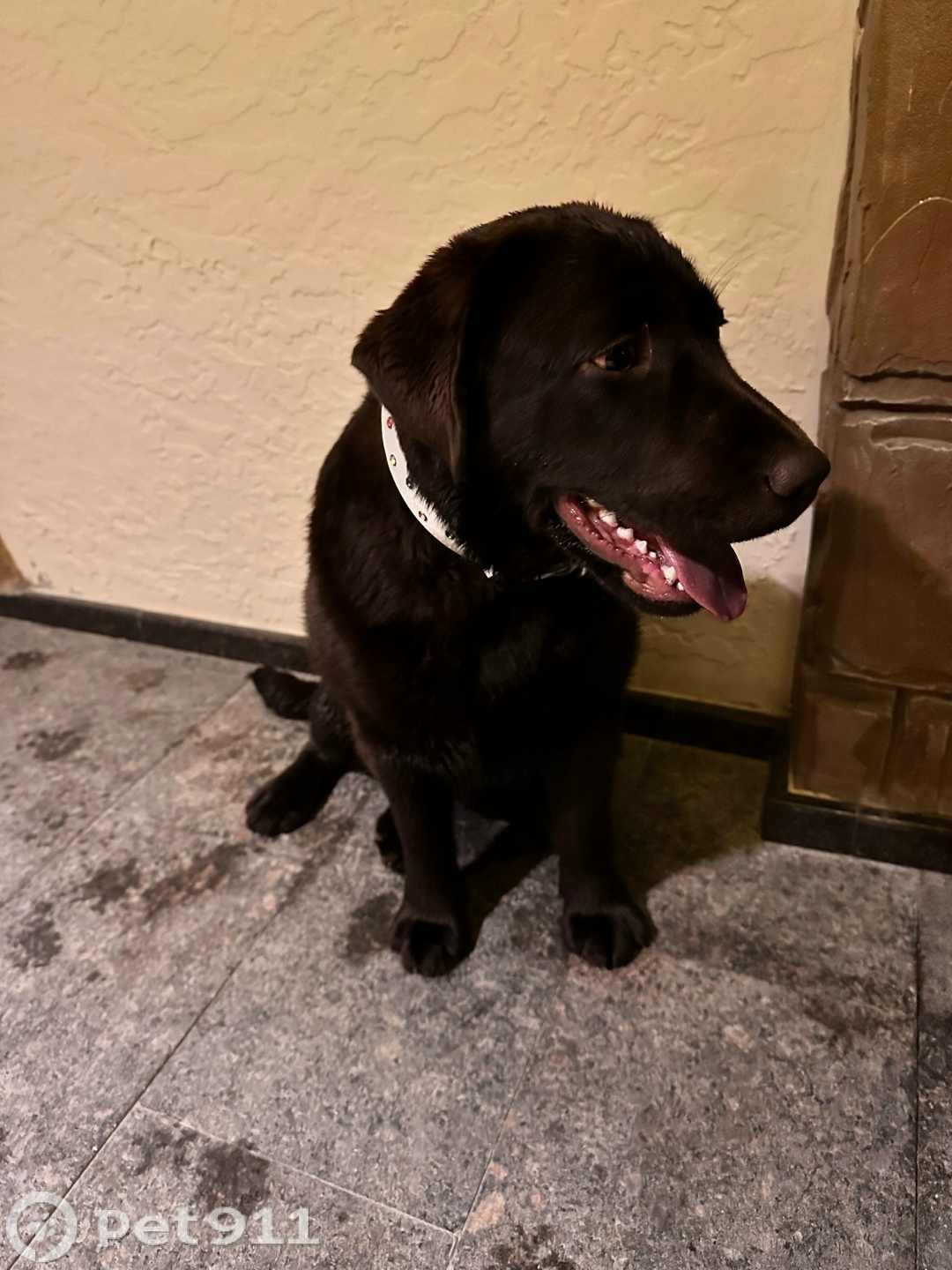 Коричневый лабрадор девочка, белый ошейник с разноцветными стразами, контактная, игривая, тянется к людям. Знает команду сидеть. Около недели бегает на территории отеля Горная сказка (Адыл-Су), до этого говорят, что видели по камерам в долине Азау около подъемников на Эльбрусе.