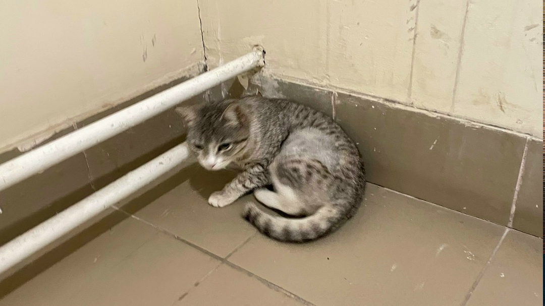 Здравствуйте! Помогите пристроить найденную кошечку. Она сама пришла в подъезд, видимо, выбросили или потерялась. В первый же день лишилась кусочка хвоста.
