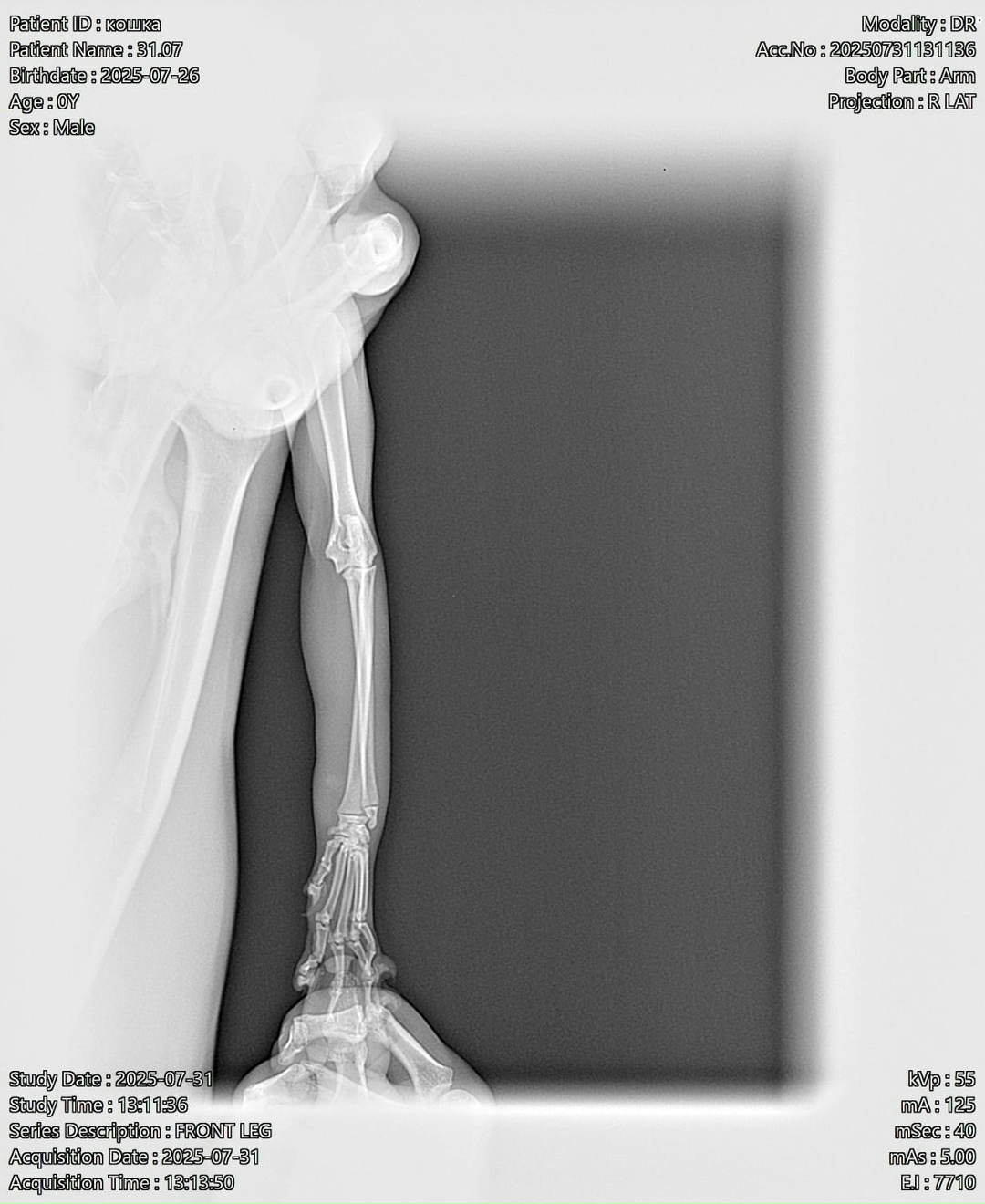 Только вот счастью нужна была помощь-передняя лапка кошки висела плетью, кошка на неё не наступала-очень похоже на перелом😢