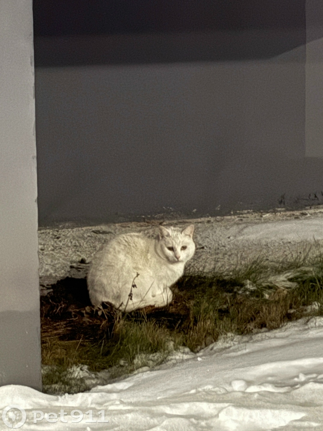 С конца января вижу эту кошку уже 4-5 раз(или кота). Белая, пугливая, по повадкам сказал бы что домашняя. Первые разы убегала, сейчас с опаской но подходит, чтобы покушать. Если кто узнал своего питомца отзовитесь. Она убегает, но сегодня первый раз подошла на расстояние руки, думаю получится поймать ее в следующий раз.
