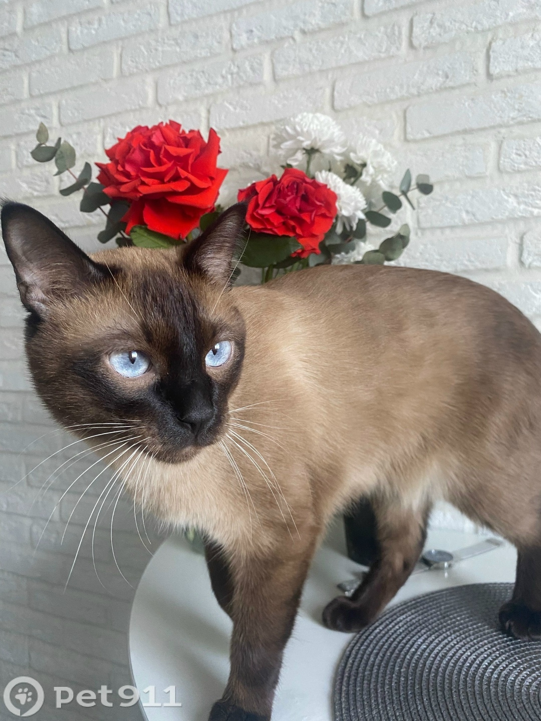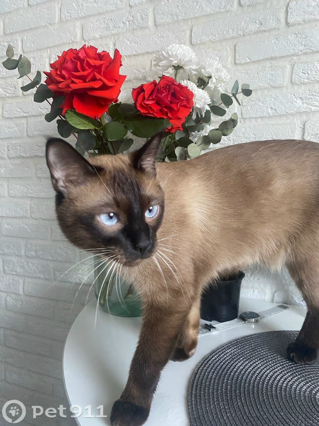 Тайская порода, очень доверчивый к людям, возможно сбежал ночью через окно Кот домашний на улице не гуляет, активный