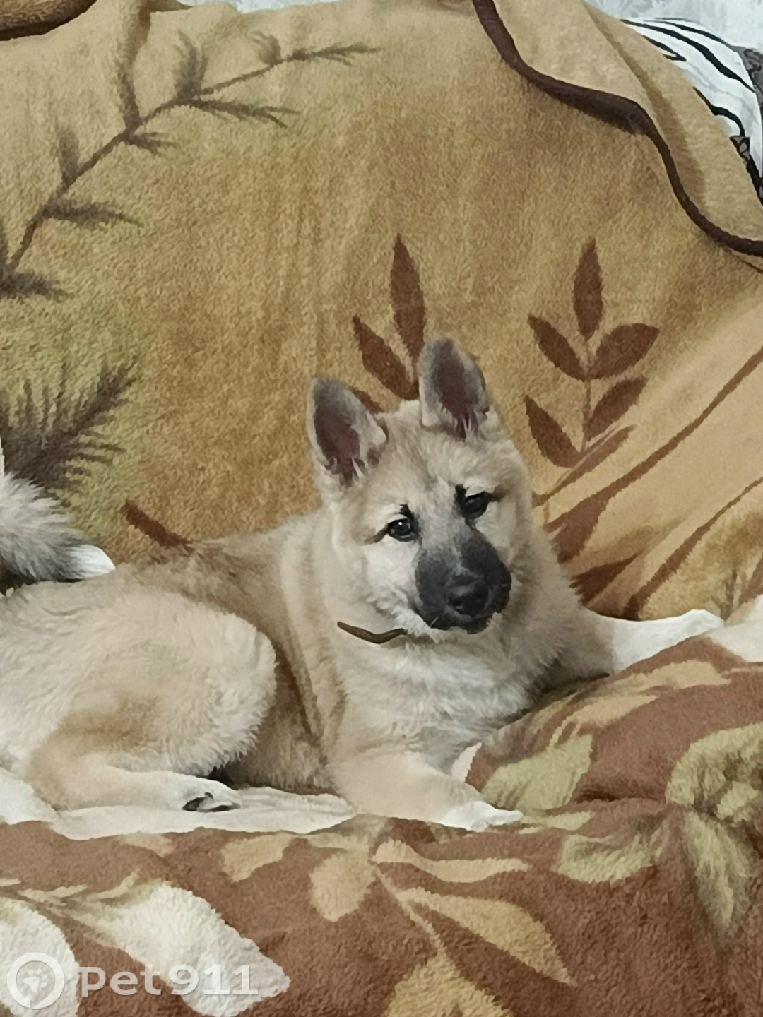 Светлый,мордочка чёрная с ошейником. Возвраст 3 месяца. Пропал. От дома п. Хотинлахти,д12 со двора