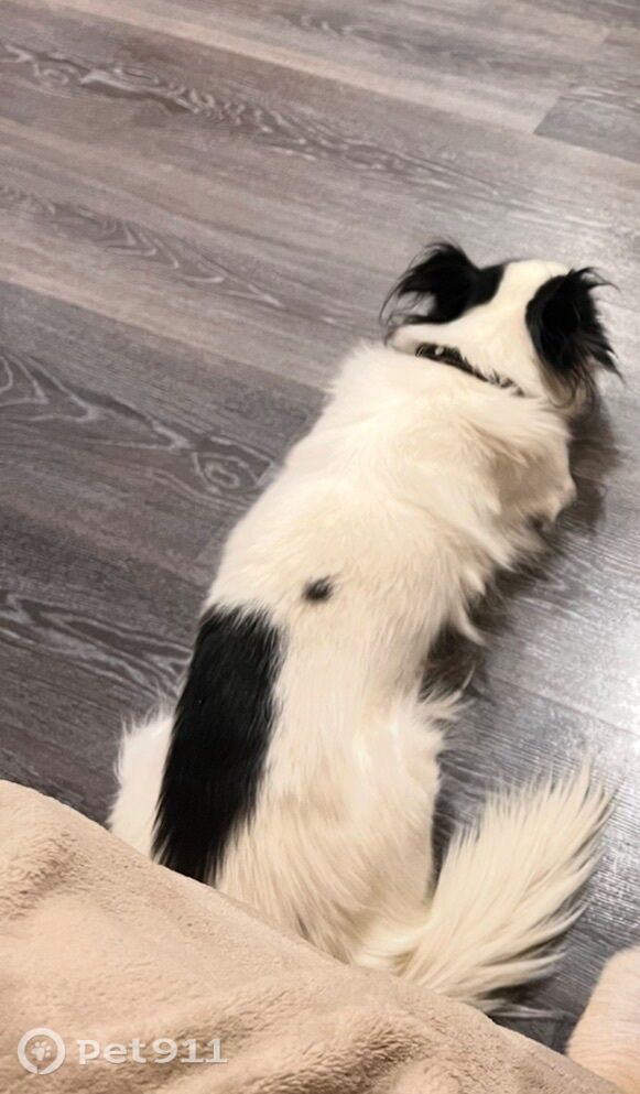 Белый с черными пятнами , маленькая, старенькая 16 лет, плохо слышит и видит