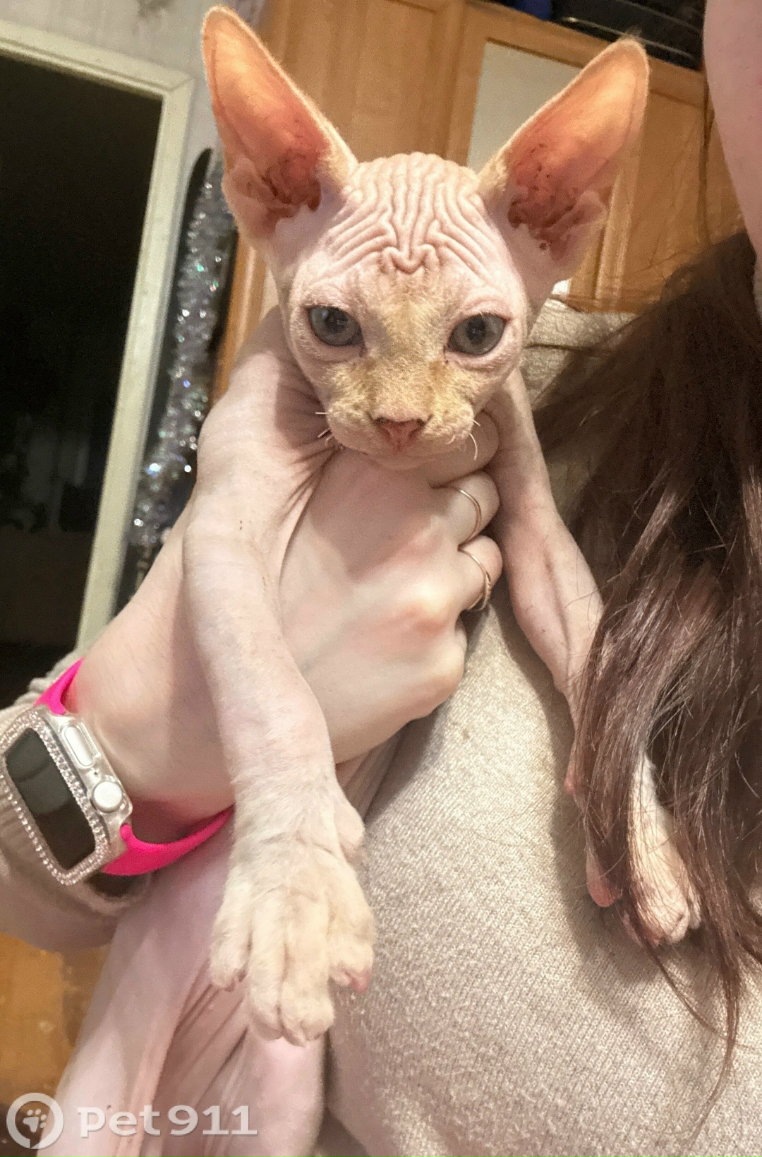 Лысый милый котенок Есть немного шерстки, рыжеватой На хвосте проглядываются рыжие полосочки