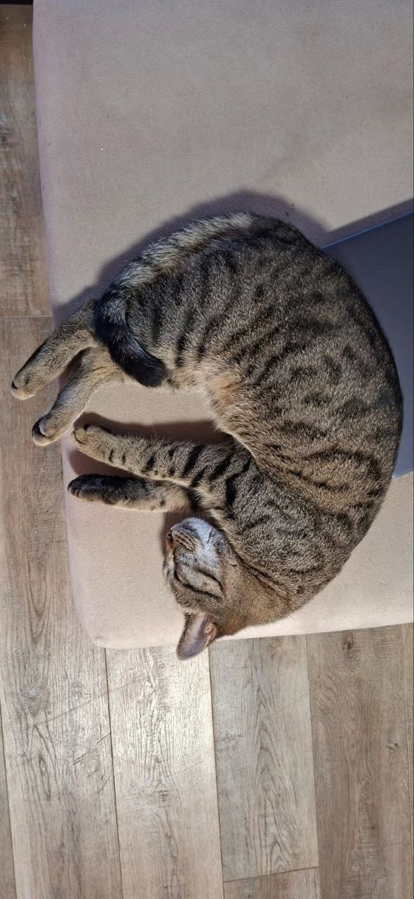 05.11.25 на Можайском шоссе, под платной дорогой,возле отбойника, со стороны ЖК Гусарская Баллада, нашли кота – как-то попал в центр дорожной развязки и не мог выбраться. Молодой, глаза желтые, цвет табби коричневый (как у копченой скумбрии), ласковый, когти подстрижены.