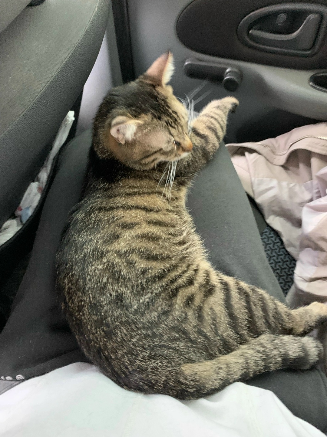 Окрас коричневый , с тигровыми полосками, возраст 1 год, мальчик, кличка Кукис.(отзывается)