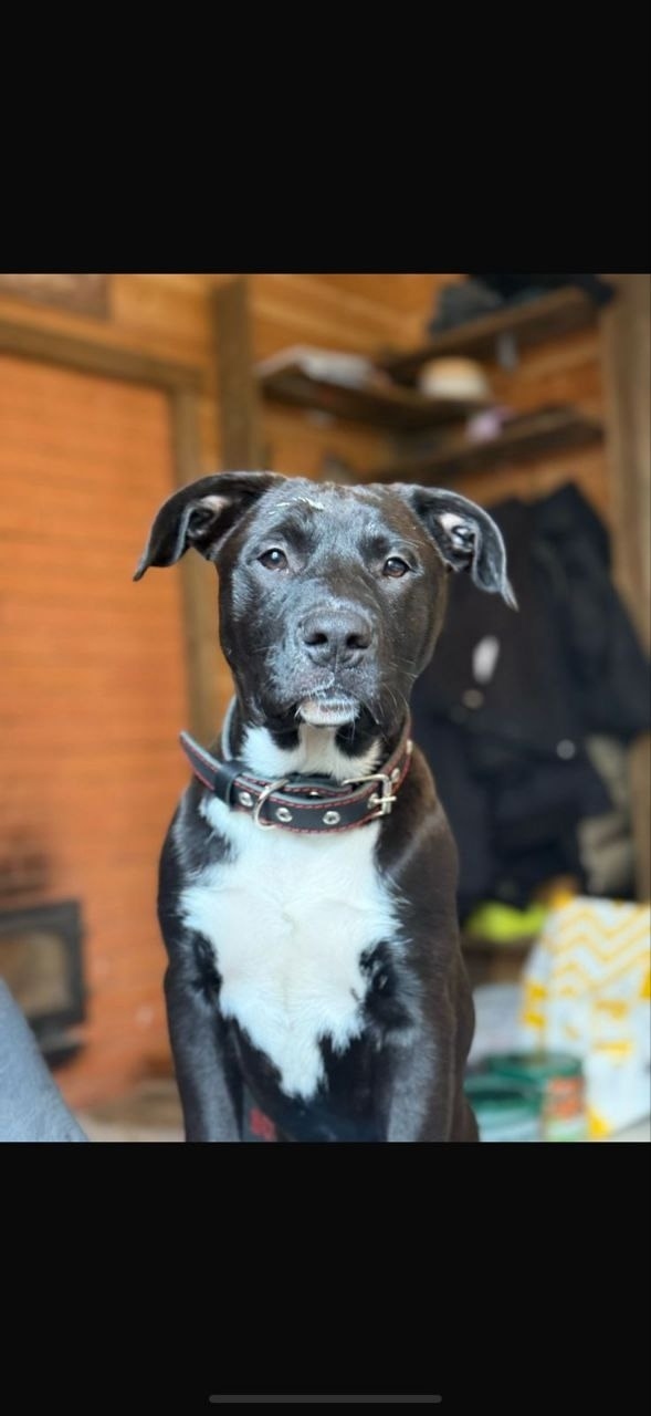 31.07 Черный пес с белыми частями. Откликается на имя Тайсон. В ошейнике. Большие лапки. Активный