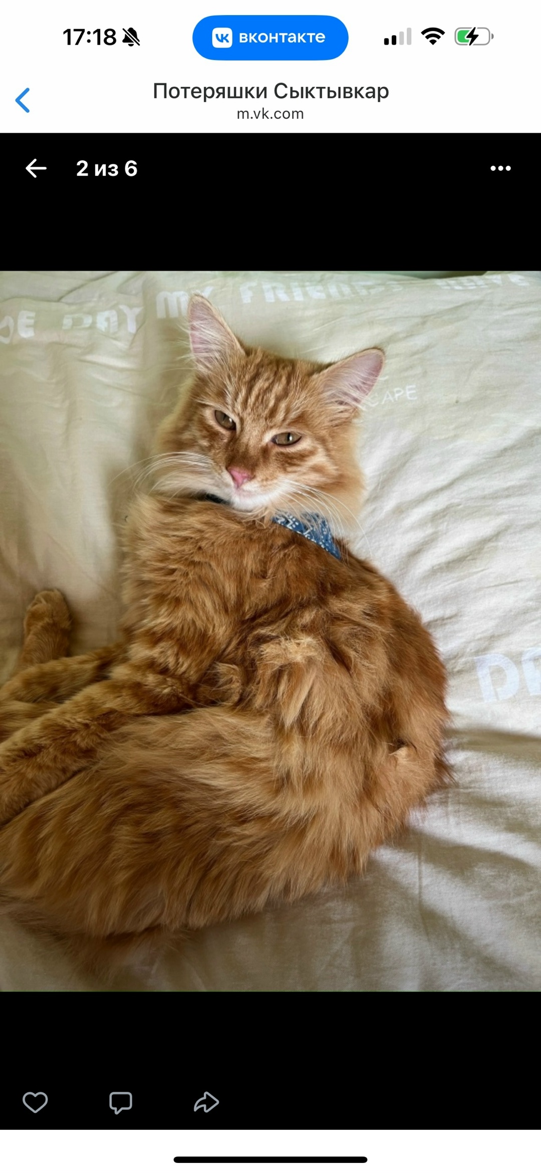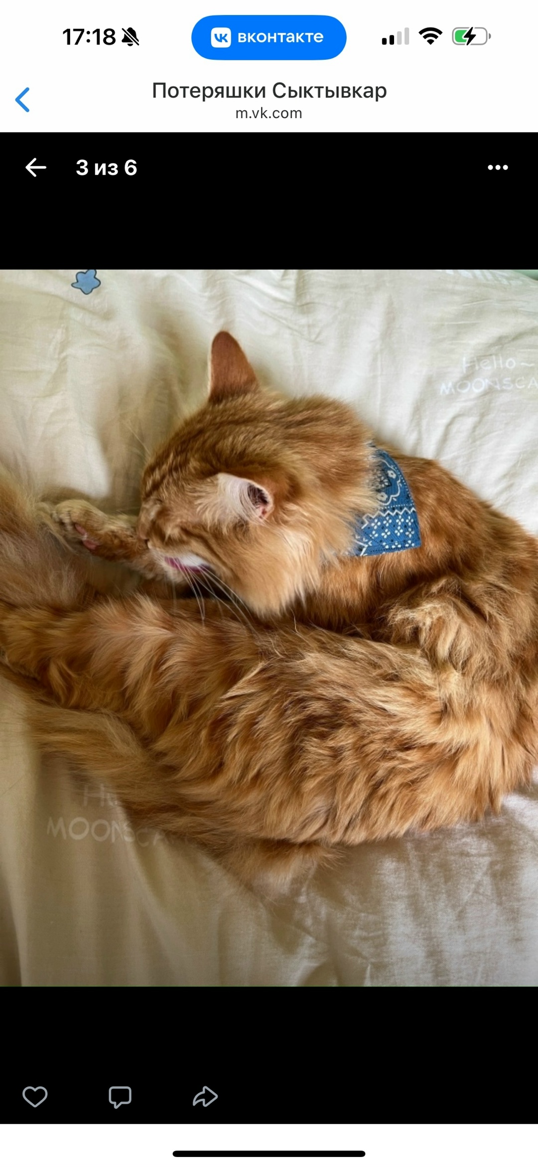 Пропал рыжий кот по кличке Марс в воскресенье 14.15.25 в районе Строителя, может быть на улицах Маегова, Кирпичной, Старовского, Катаева, Стандартного проезда и ближайших к ним.