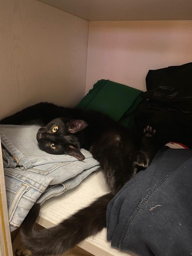 Зовут ее Кира. Черного цвета. Кошка ласковая, послушная. Любит гулять во дворе, но всегда возвращается домой! Кошка очень любима и по ней сильно скучаем
