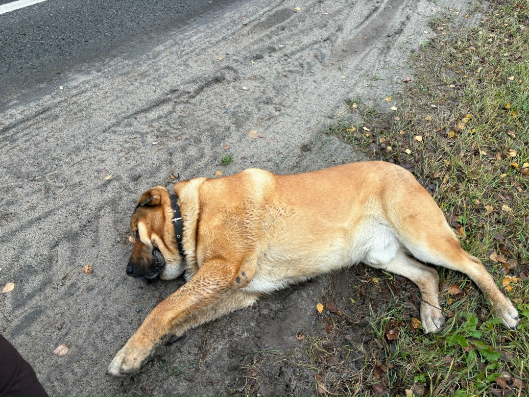 На дороге , в районе Чёрной найдена собака. Очень крупный мальчик. С ошейником. Очень добрый. Может кто ищет. Ходит вдоль дороги.