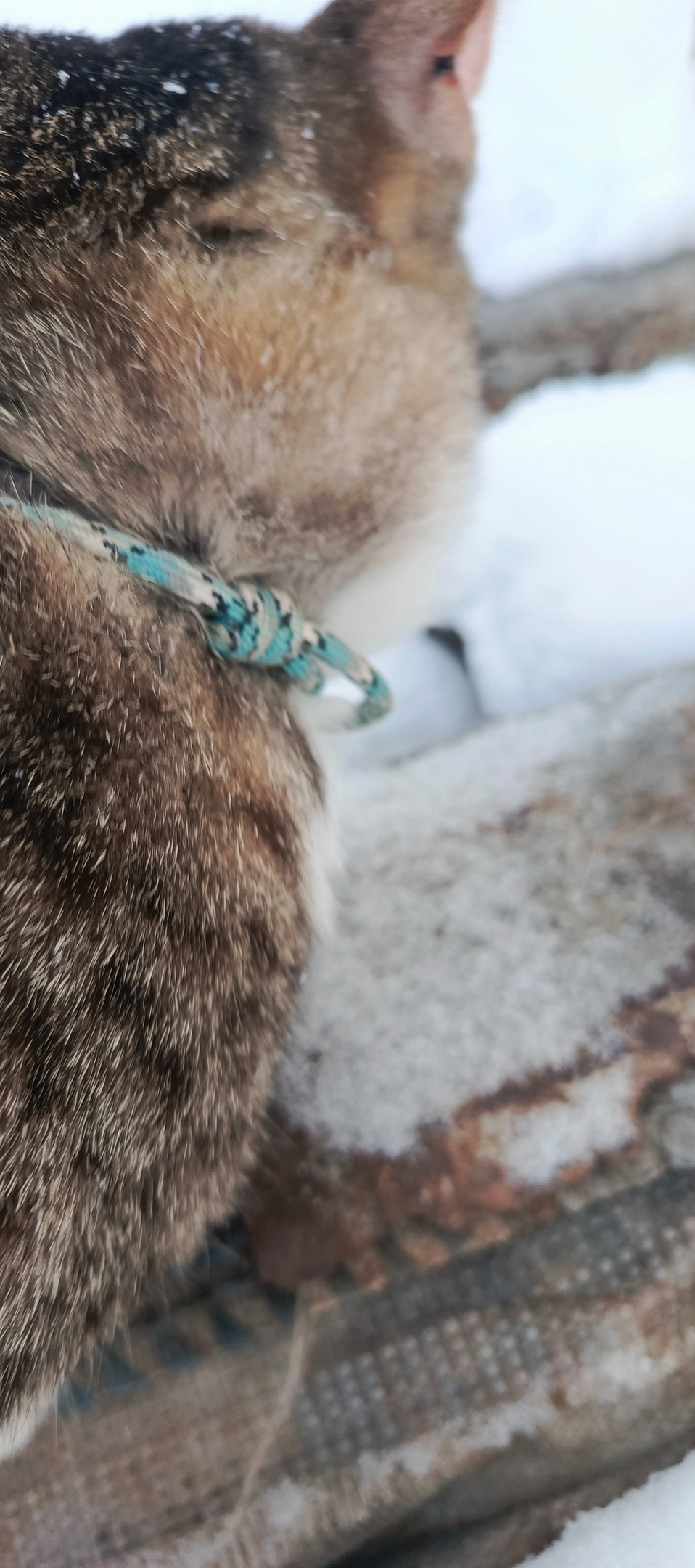 Домашний. С ошейником в виде шнура.